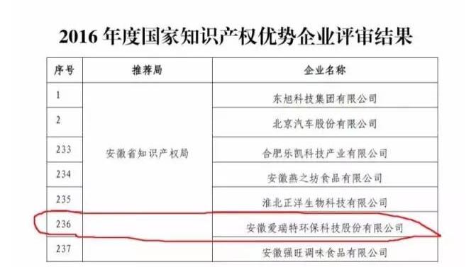 關(guān)于2016年度國(guó)家知識(shí)產(chǎn)權(quán)示范企業(yè)和國(guó)家知識(shí)產(chǎn)權(quán)優(yōu)勢(shì)企業(yè)評(píng)審和復(fù)核結(jié)果公示的通知